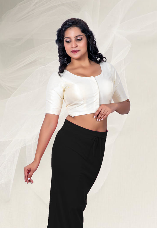 Elbow sleeves Raw Silk Plain White Blouse
